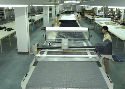 公司采用CAD計(jì)算機(jī)輔助排料系統(tǒng)進(jìn)行排料,該系統(tǒng)準(zhǔn)確、高效。鋪料機(jī)代替手工鋪料的優(yōu)點(diǎn)使鋪料均勻、整齊、松緊適宜、降低工人勞動強(qiáng)度。